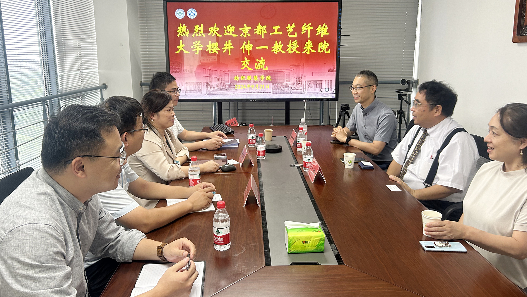 9月20日—21日,日本国立京都工艺纤维大学纤维学系学系长樱井伸一教授、徐淮中副教授一行访问我校,并与纺织服装学院签订合作备忘录。纺织服装学院党委书记刘其霞接待了来宾,对樱井教授一行的到来表示热烈欢迎,并介绍了学院的历史沿革、发展概况以及近年来取得的科研成果。她希望双方加强学生交流、教师互访、学术科研交流等领域的合作,共同培养具有国际视野的高素质人才。樱井教授介绍了京都工艺纤维大学的建设情况、学科专业设置和未来发展规划。他表示,京都工艺纤维大学是日本文部科学省选出的37所“超级国际化大学计划”的学校之一,位于日本千年古都京都市,学校国际交流广泛,希望通过交流和探讨,共同推进两校的实质性国际合作