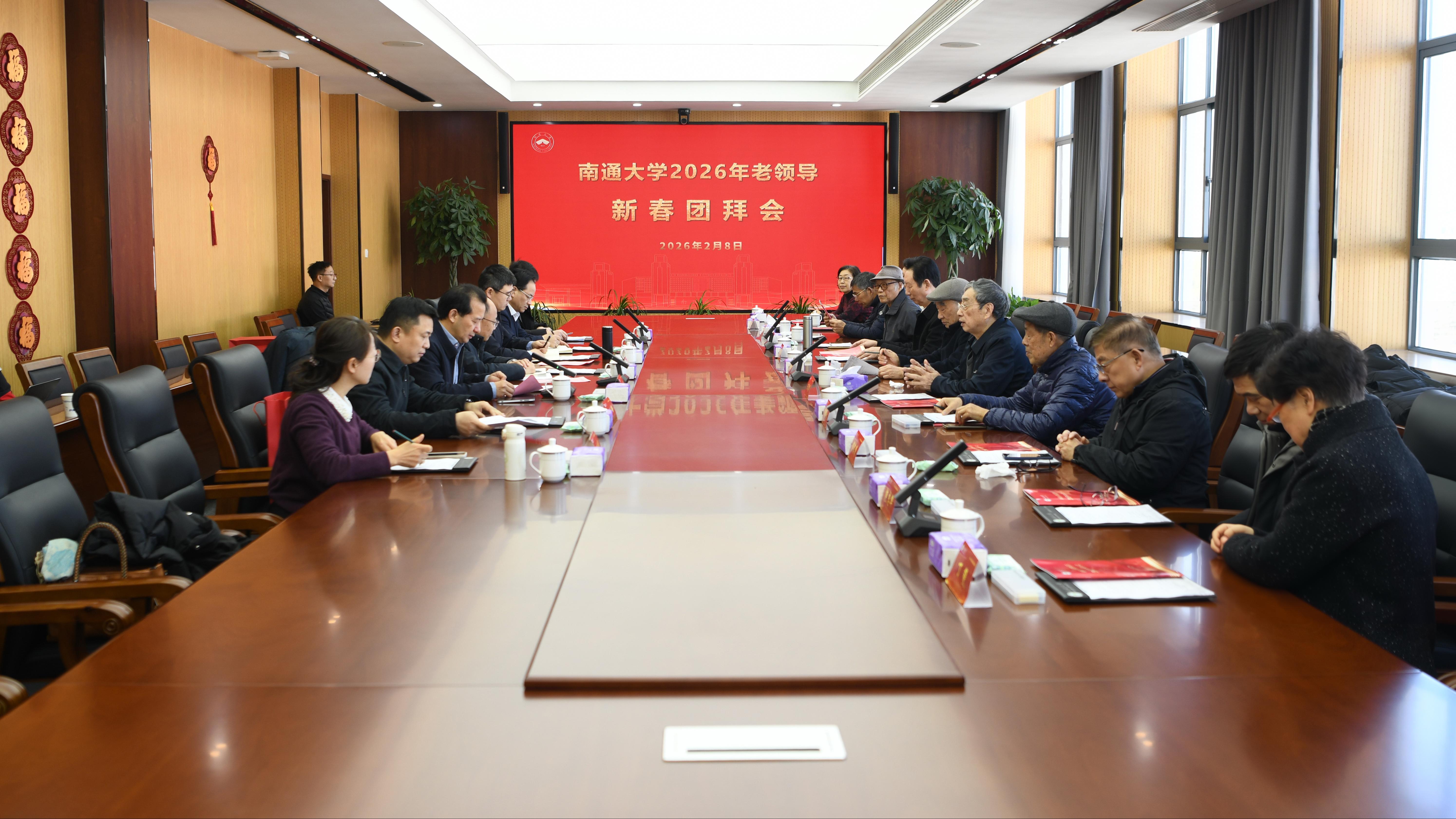 2月8日上午,我校召开2026年老领导新春团拜会。校党委书记杨宇民、校长王建浦与退休老领导共话学校发展,共迎新春佳节。校党委副书记王卫东主持活动。校党委常委、组织部部长吴如高出席会议。杨宇民代表学校向与会老领导致以新春美好祝愿,对老领导为学校发展作出的卓越贡献致以崇高敬意和衷心感谢。他表示,过去一年是学校发展极有荣光的一年,省委书记信长星来校视察并寄予殷切期望,全体通大人奋力拼搏,在“十四五”收官之年交出高质量发展的亮眼答卷,为建设特色鲜明国内一流大学奠定坚实基础,这份成绩的取得离不开老领导们的关心与支持。杨宇民指出,当前学校正处于从“量的积累”转向“质的飞跃”的关键爬坡期,迎来人才培养提质扩