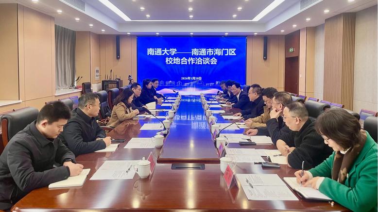 1月20日上午,海门区委副书记、副区长、我校纺织服装学院党委书记刘其霞,海门区委常委、组织部部长、党校校长王文献一行来校开展合作洽谈。校党委书记杨宇民,校党委常委、副校长华亮,校党委常委、组织部部长吴如高出席会议。杨宇民代表学校对海门区领导表示热烈欢迎,对海门区委、区政府长期以来给予学校建设发展的关心与支持表示衷心感谢。他表示,只有服务好南通,才能办好南通大学,学校将整合学科、人才、科研等优质资源,全面深化与海门区全方位、多层次、宽领域的合作,为海门经济社会高质量发展注入强劲的人才动力与创新活力。华亮表示,南通大学始终将校地协同作为高质量发展的重要抓手,在纺织服装、生物医药、智能制造等领域积淀