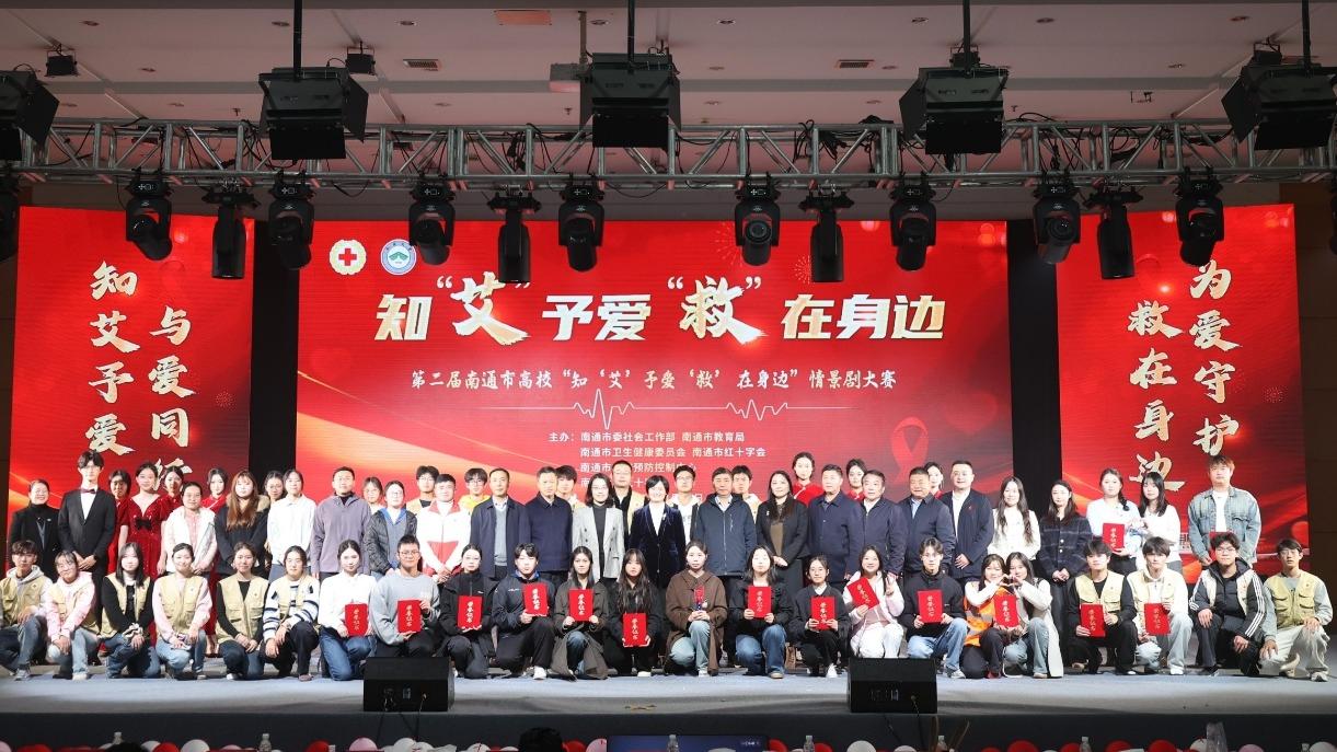 本次大赛由南通市红十字会、南通市委社会工作部、南通市教育局、南通市卫生健康委员会、南通市疾病预防控制中心主办,我校红十字会承办。大赛以“知‘艾’予爱 ‘救’在身边”为主题,设置防艾组与救护组两大组别,共14支参赛队伍晋级决赛。我校数学与统计学院的防艾情景剧《我们防艾但不防爱》和微电子学院(集成电路学院)的救护情景剧《沙海铸绿魂》荣获一等奖;医学院的防艾情景剧《以爱抗爱,携手同行》和信息科学技术学院的救护情景剧《寸土寸心》荣获二等奖。