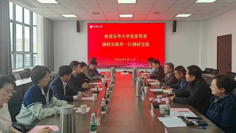 4月11日上午,东华大学党委常委、副校长陈革一行来校交流。校党委常委、副校长徐骏出席座谈会。徐骏代表学校对东华大学一行表示欢迎,介绍了我校办学概况、学科建设及体育工作成效,重点分享了传承张謇体育教育思想、推进学生体质强健行动、创新体育场馆运营与智慧体育建设、拓展对外服务业务等特色经验。他指出,两校同根同源、文脉相通,在学科发展、人才培养、服务地方等方面有着深厚的合作基础,希望两校以此次交流为纽带,深化在体育教育、学科建设、人才培养等领域的务实合作,共促高校体育事业高质量发展。陈革介绍了东华大学学科建设及对接上海先导产业推进教学改革、以项目制教学深化工程人才培养的举措和成效,表示此次调研旨在学习