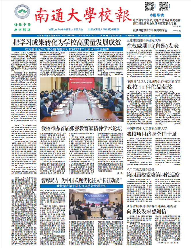融媒聚焦丨《中国交通报》 南通大学:学用相济兴江海 笃行精进启新程